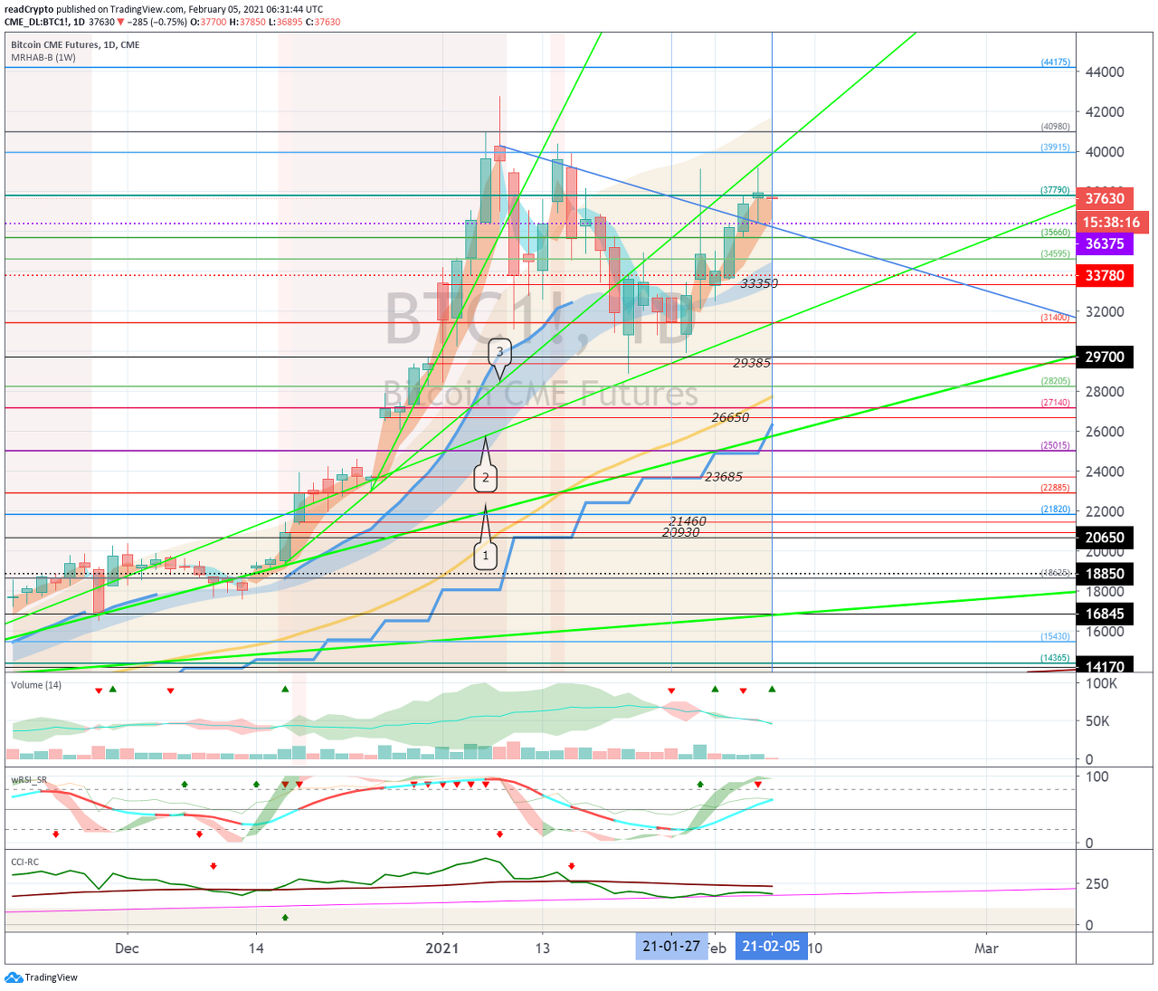 코멘트: (CME 비트코인 (BTC1!) 1D 차트)