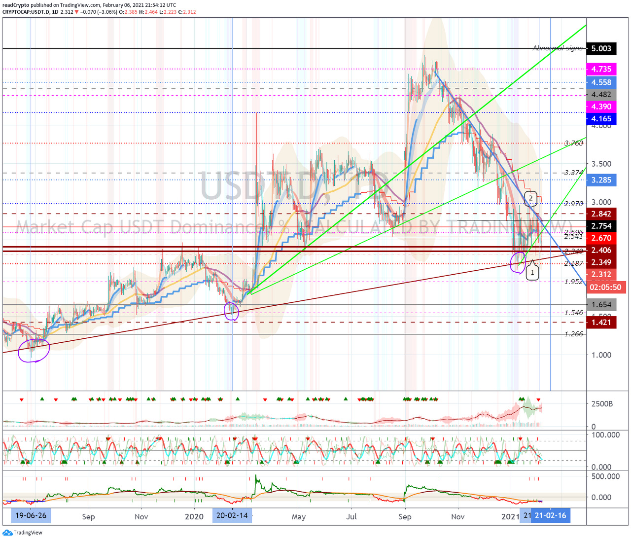 BTC 가격이 일정 구간이나 지점에서 도달하여 횡보할 때 BTC 도미넌스가 하락하게 된다면 알트코인들의 가격은 상승하게 될 것으로 예상됩니다.