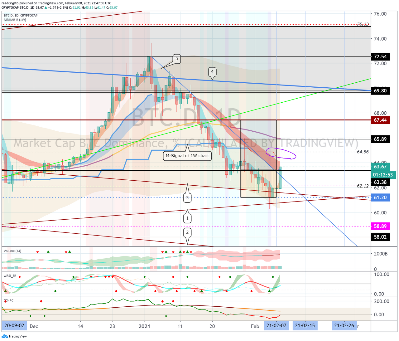67.44 지점 이상 상승하게 된다면, 알트코인은 하락 추세로 전환되어 있을 가능성이 높다고 생각합니다.