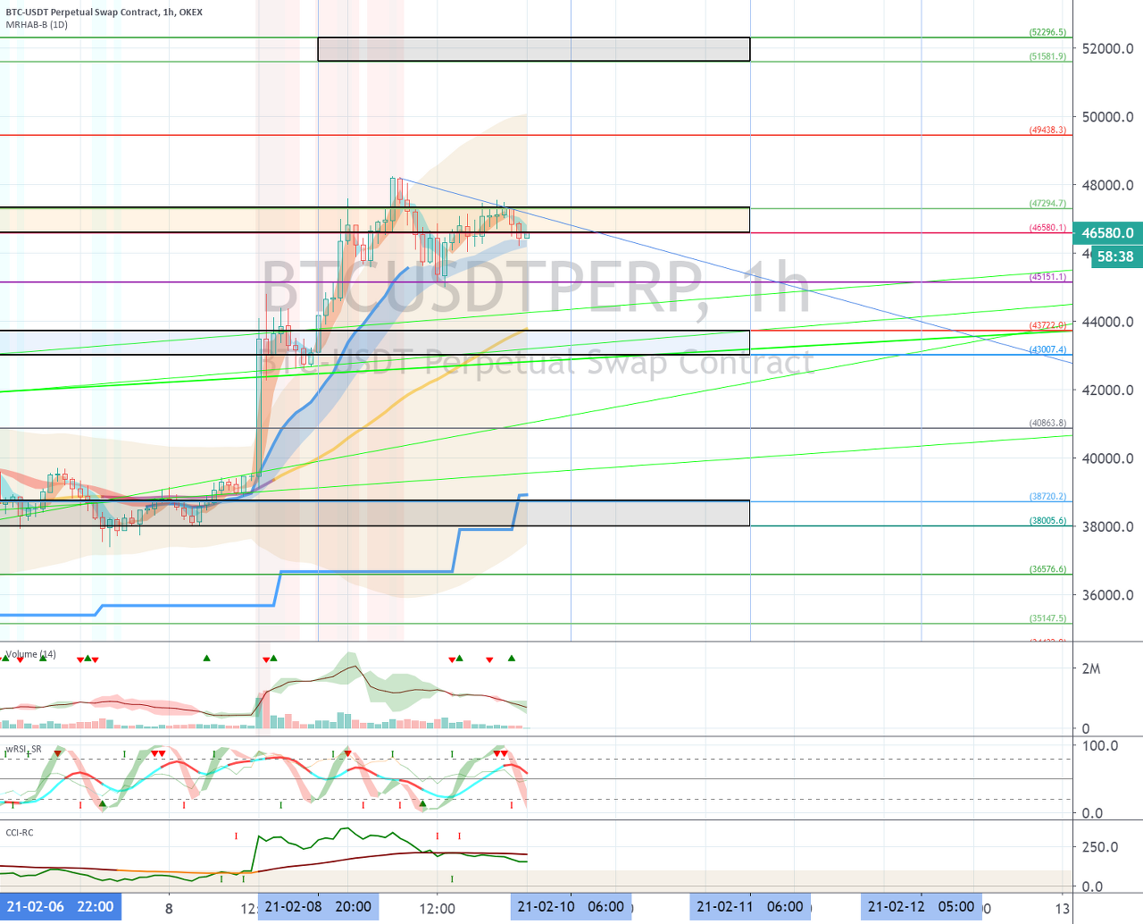 2월 10일경의 변동성으로 44715.0-47996.5 (최대 41433.5-47996.5) 구간에서 벗어나는 움직임이 나오는지 지켜봐야 합니다.