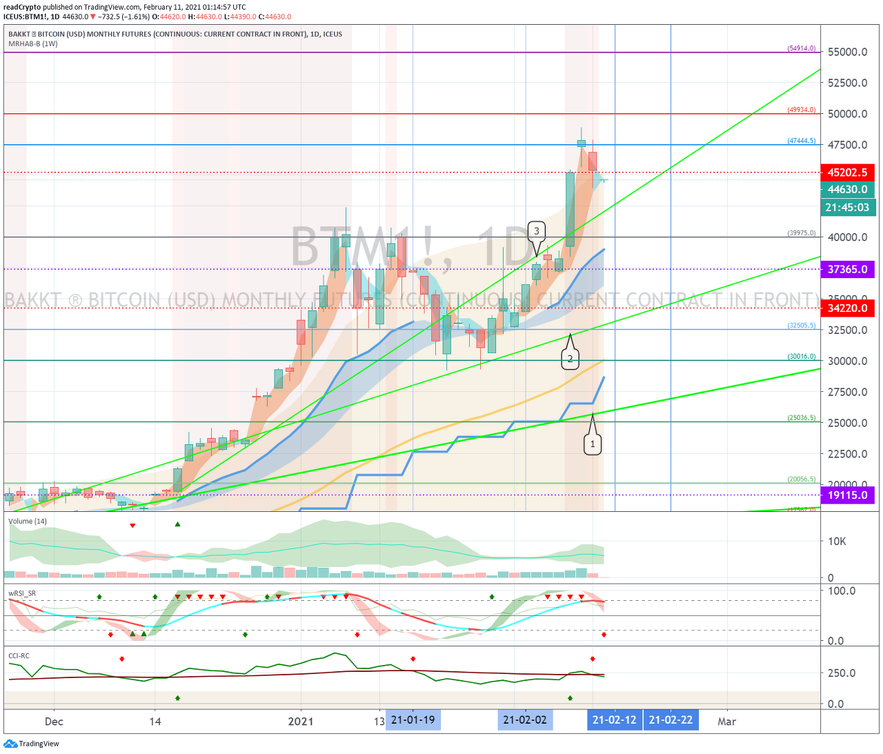 코멘트: (BAKKT 비트코인 (BTM1!) 1D 차트)