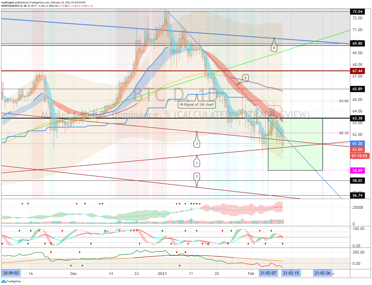 상승 추세선 (1) 이하에서 도미넌스를 유지할 수 있다면, 코인 시장은 상승 추세를 유지할 것으로 예상됩니다.
