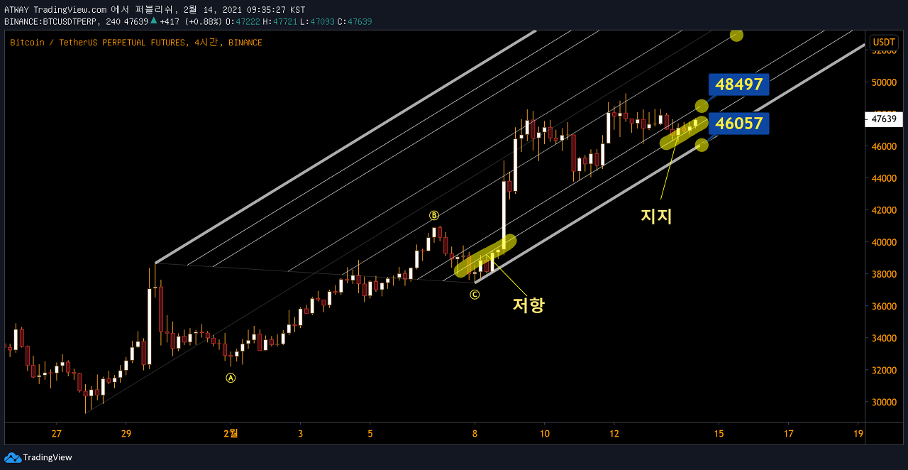 이에 기반하여 매수관점을 유지할 수 있으며 같은 방식으로 저항대와 상승 목표타겟 등을 설정할 수 있습니다.