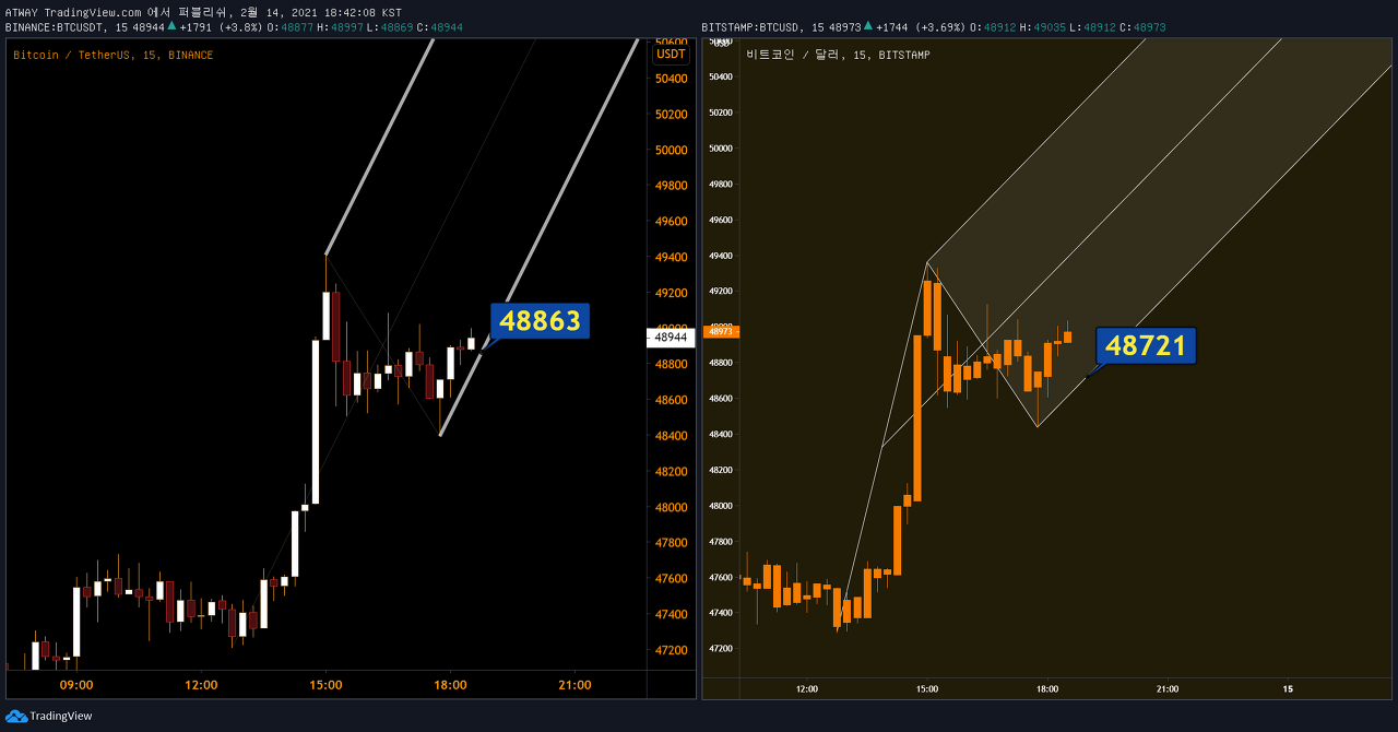 당장에 추가상승이 나온다면 우선은 5만달러 넘으면서 저항이 어느정도 발생하는지를 봐야할 것이고 내린다면 47800달러에서 브레이크가 걸리는지를 체크해야 합니다.