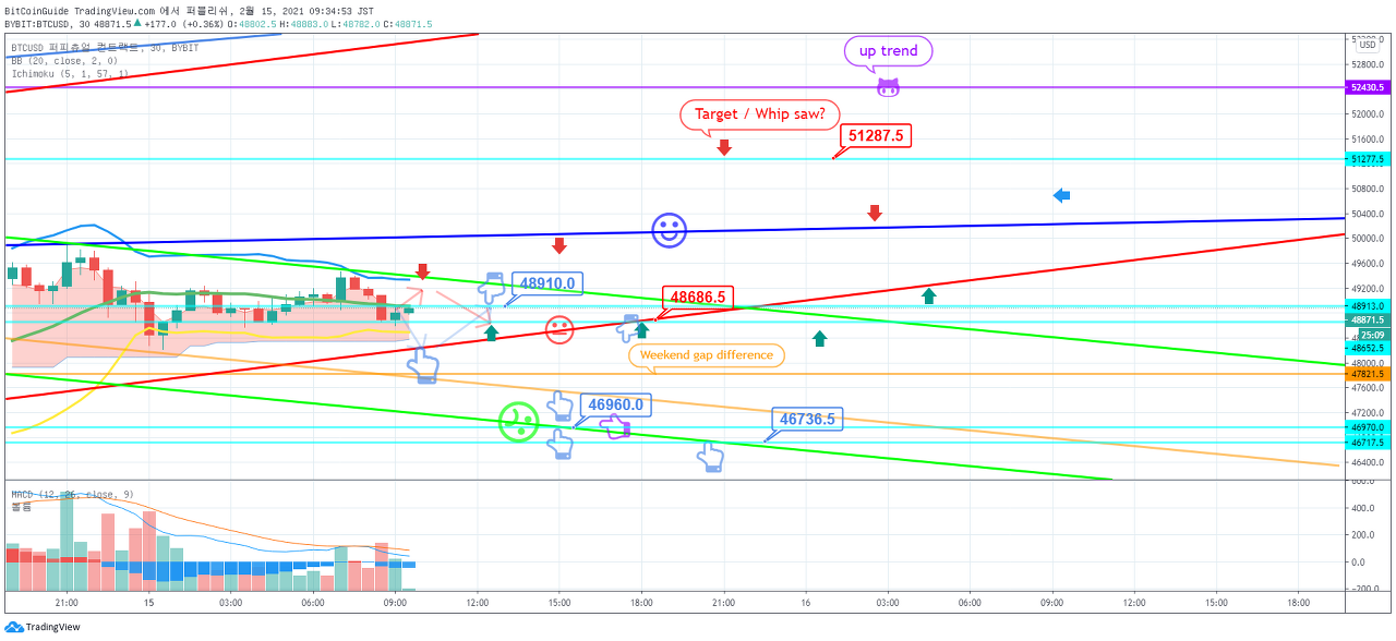 2월 15일 비트코인 bybit 차트분석입니다. by BitCoinGuide on TradingView.com