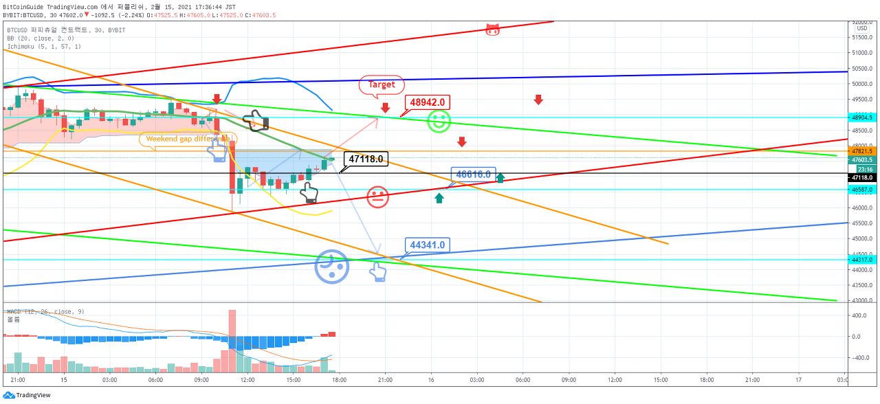 오늘 비트코인에서 주말 갭차이 되돌림이 나오는지 여부에따라