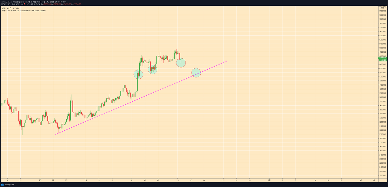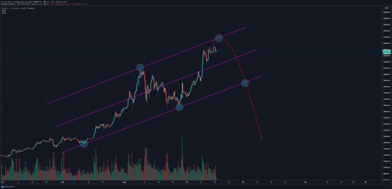 한번더 바닥에 대한 리테스트가 있을거라 보고있습니다. 제가보는기준으로는 이전저점인 45000을 한번은 깰수있다고 봅니다.