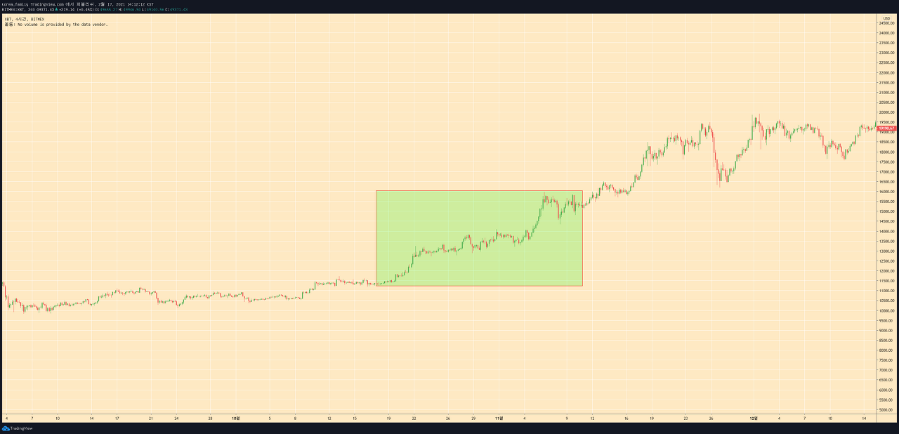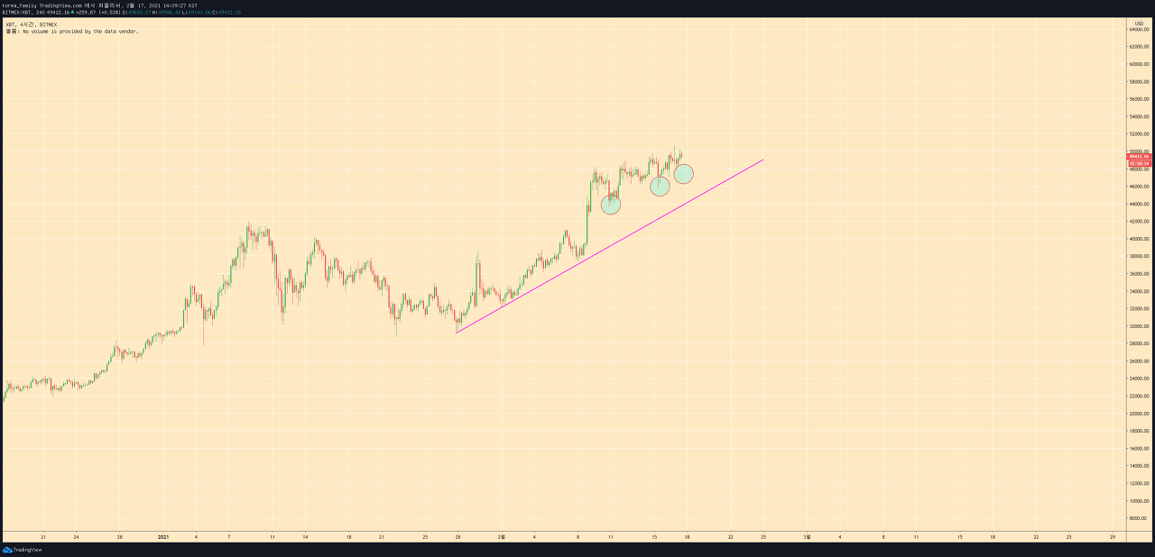 지속적으로 저점을 올리는 패턴이고. 51:49의 확률로 피날레를 보고있지만 이패턴은 지난10월에 봤던.