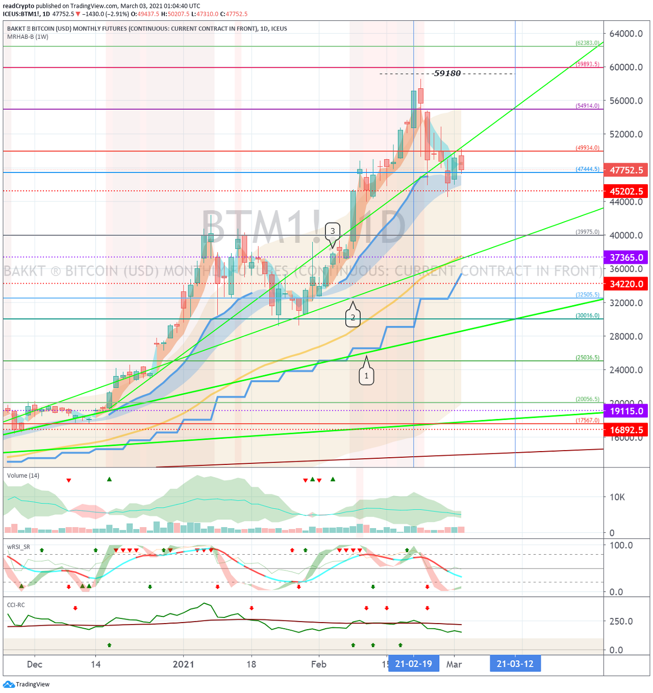 코멘트: (BAKKT 비트코인 (BTM1!) 1D 차트)