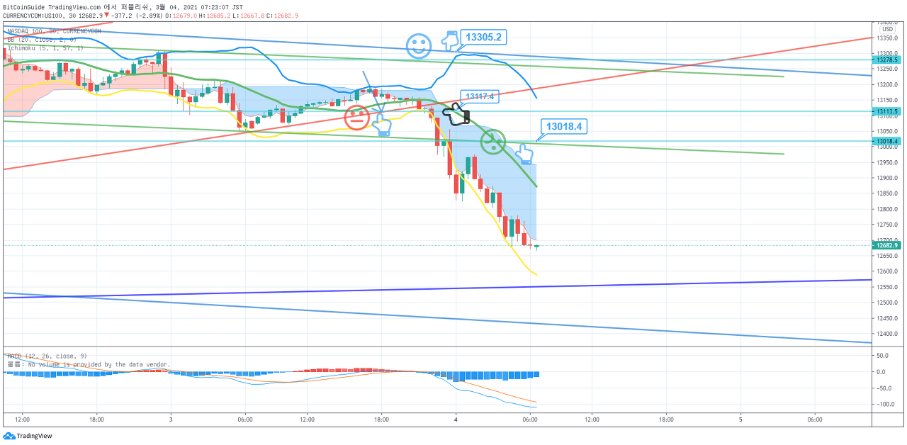 3월 3일 나스닥 US100 해외선물 차트분석입니다. by BitCoinGuide on TradingView.com