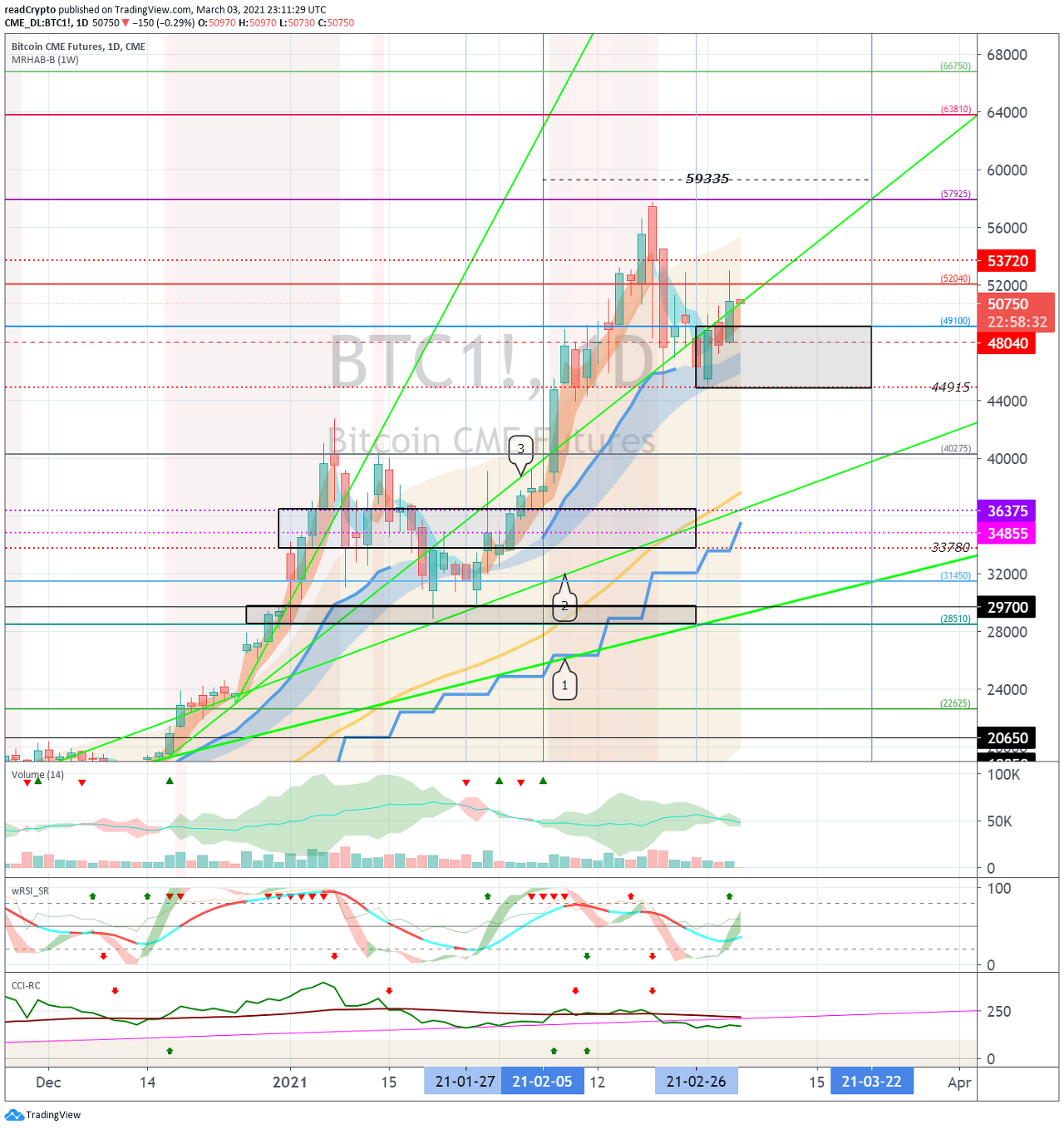 코멘트: (CME 비트코인 (BTC1!) 1D 차트)