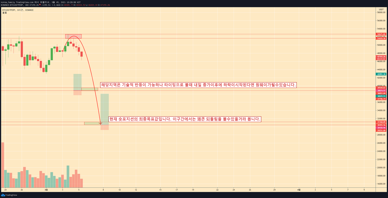 이차트는 기술적반등자리와 숏의 중단기 목표값입니다. 30K에서 멈출지 아니면 완전