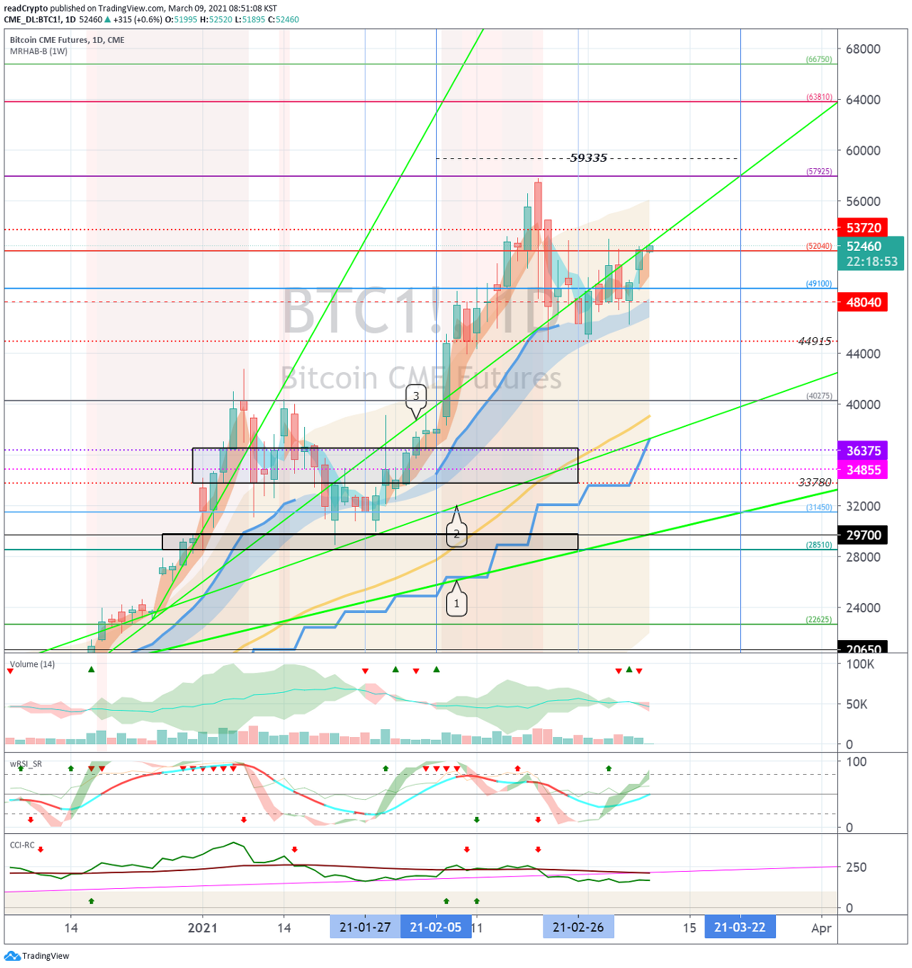 코멘트: (CME 비트코인 (BTC1!) 1D 차트)