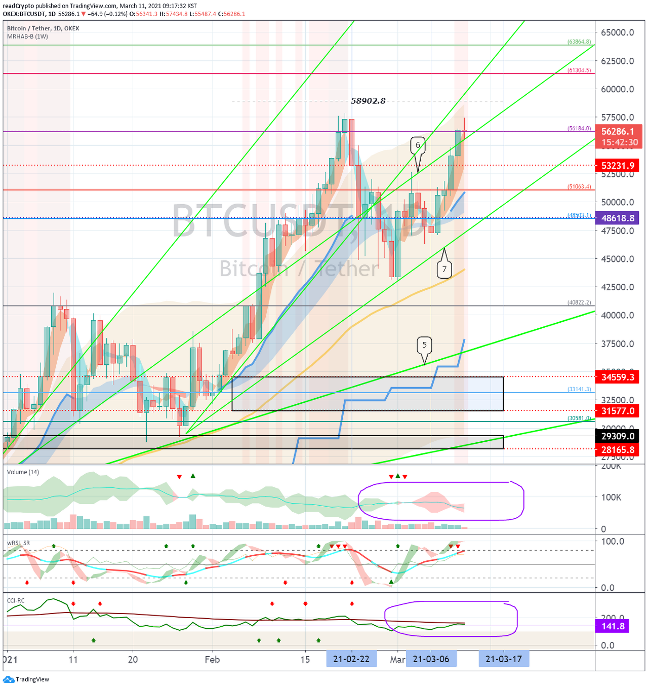이 흐름은 중요한 돌파 지점인 58945.39 지점에 대해서 돌파 시도가 나올 때까지 진행될 가능성이 높다고 생각합니다.