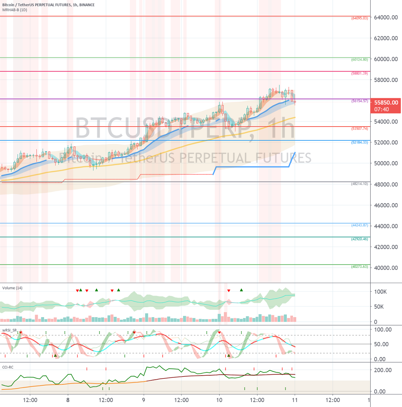 다만, 59263.5 지점을 돌파 시도하여 실패하게 된다면, 급락이 나올 가능성이 있으므로 신중한 트레이딩이 필요합니다.