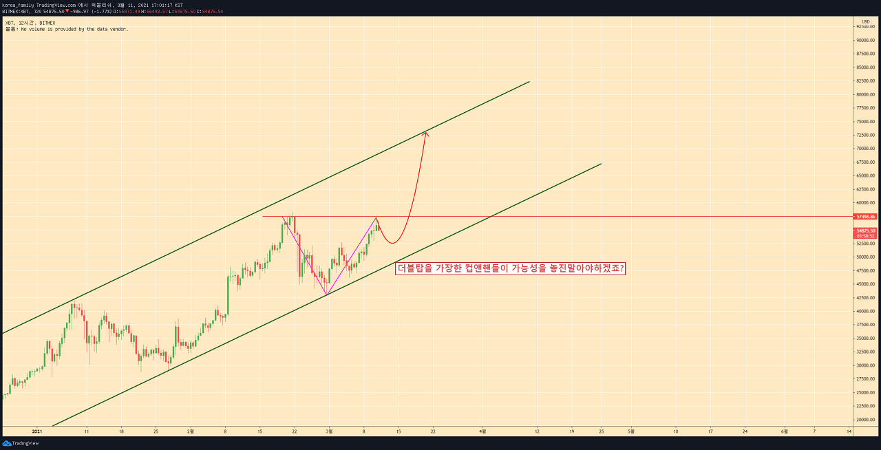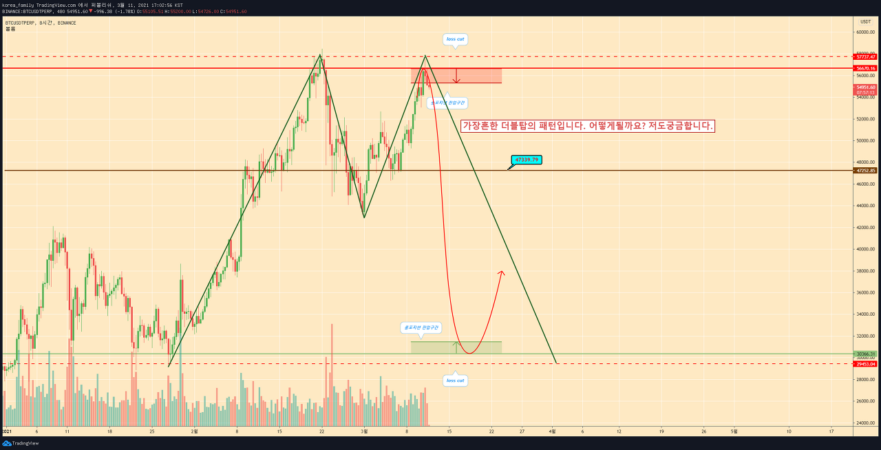 3월 11일 비트코인분석 더블탑 이후에 나올만한 패턴. by korea_family on TradingView.com