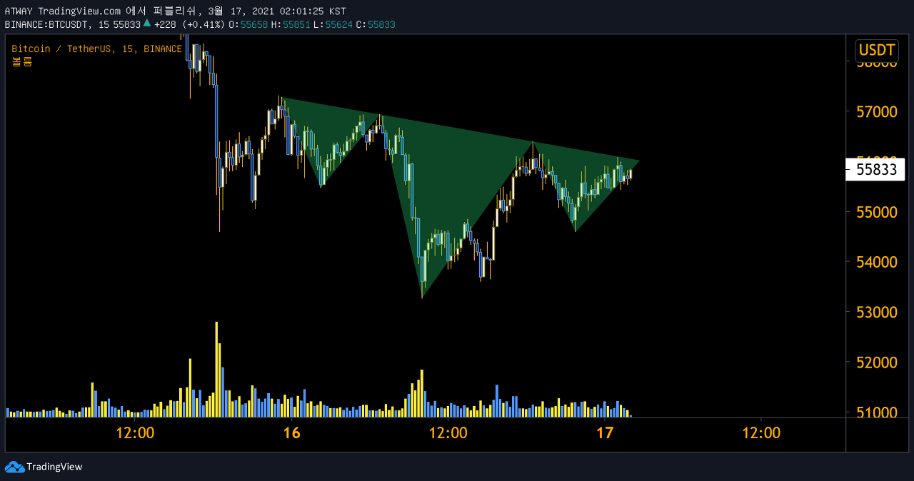 그리고 직전 박스권 55~56K 까지 올라왔습니다.
