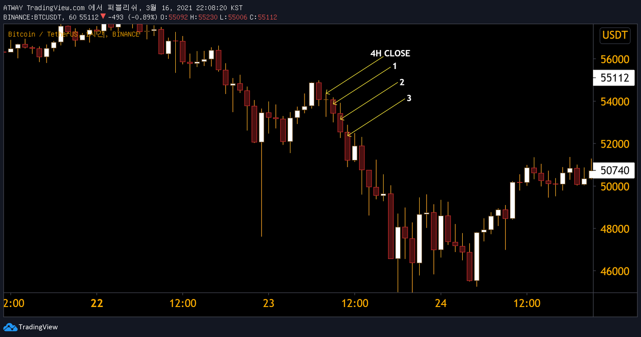 코멘트: 위그림은 당시 4시간 종가마감 이후에 발생된 캔들에 관한 분석입니다.