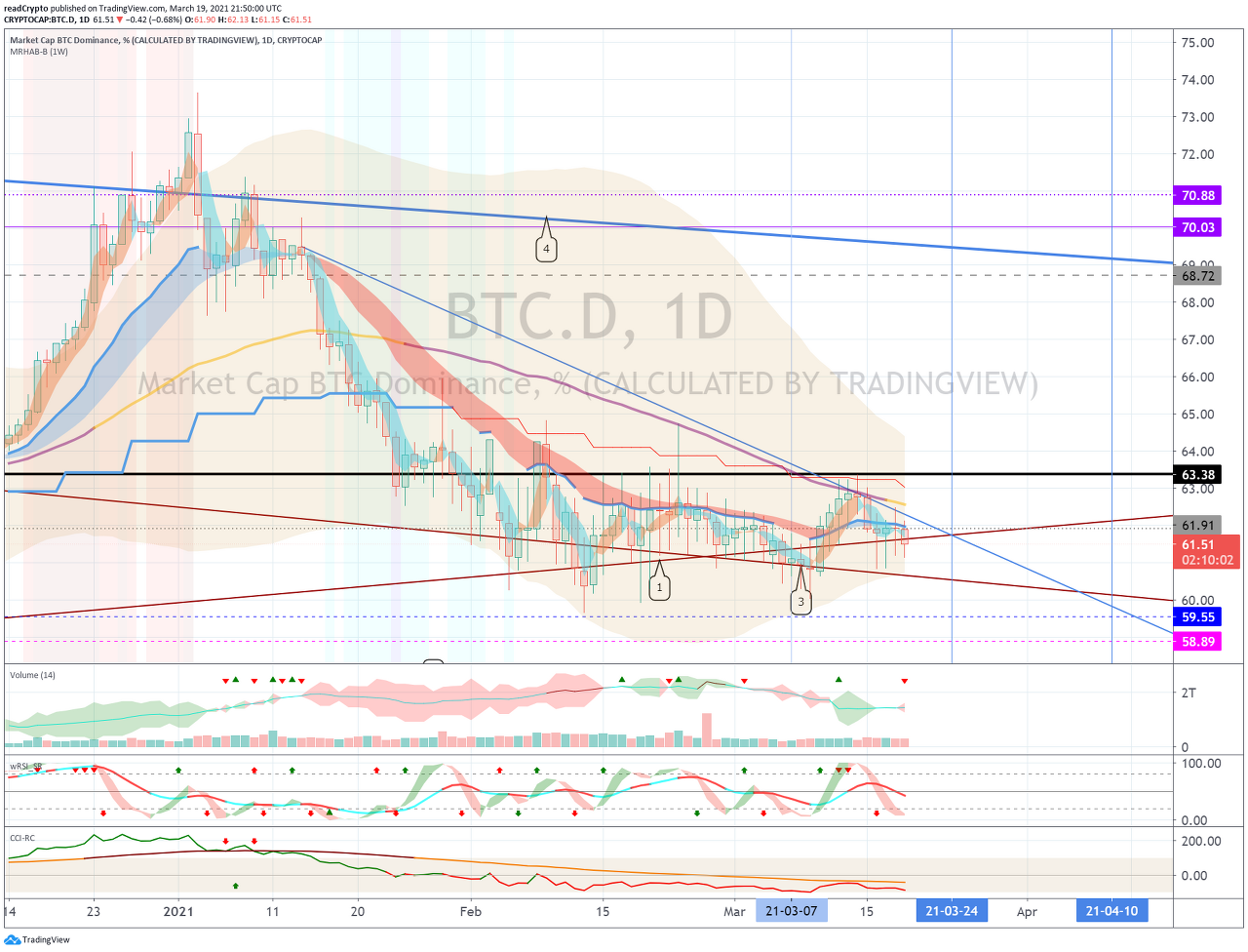 알트코인의 상승장은 BTC 도미넌스가 63.38 지점 이하에 위치해 있을 때라 생각합니다.