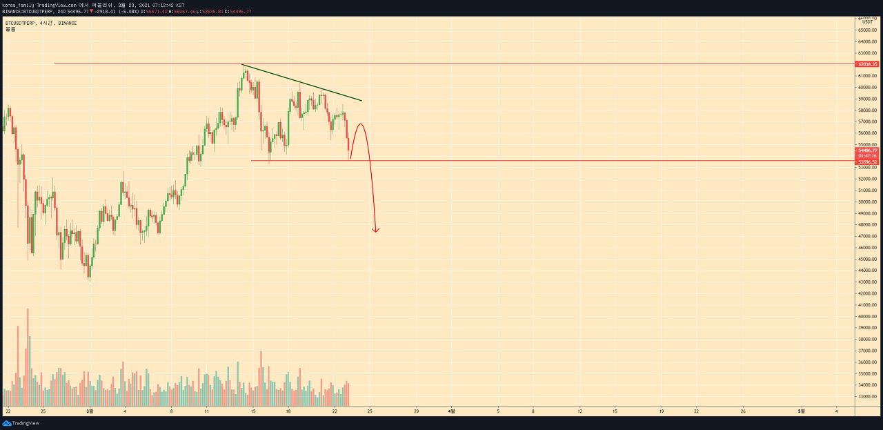 3월 23일 비트코인 분석 디센딩 확정 목표값은어디? by korea_family on TradingView.com
