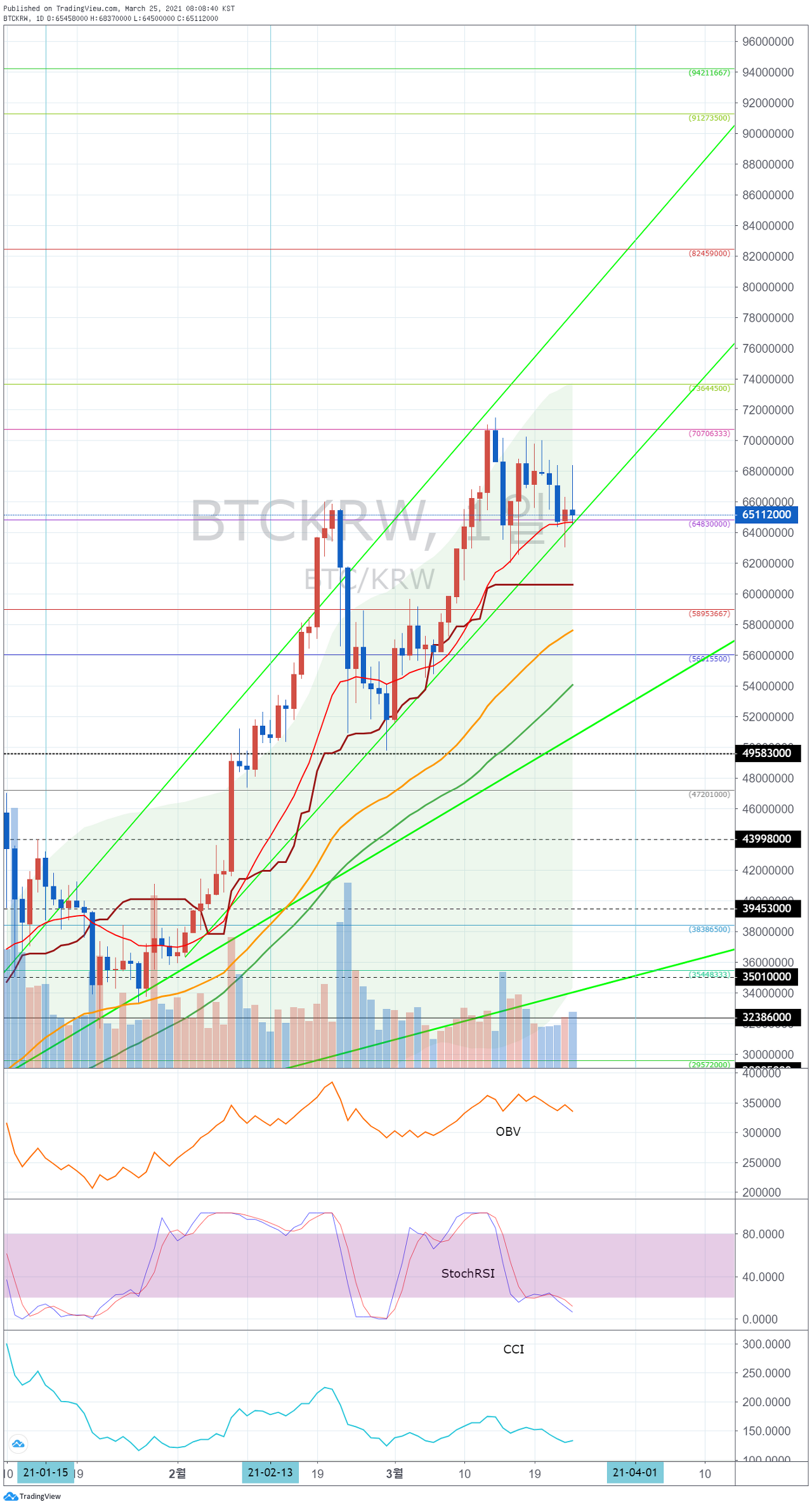 64837000-70694000 구간에서 벗어나는 움직임이 나오는지 지켜봐야 합니다.