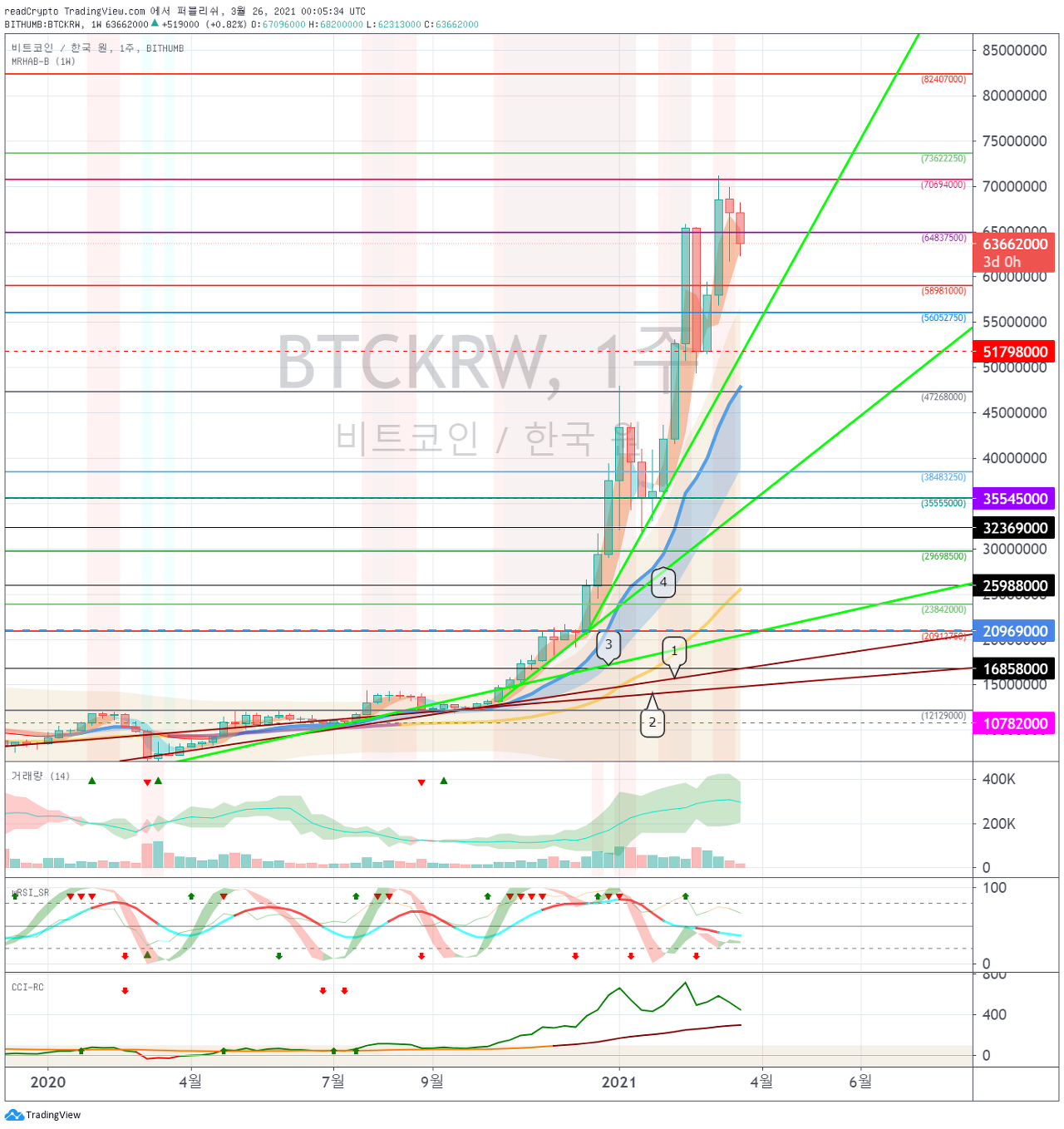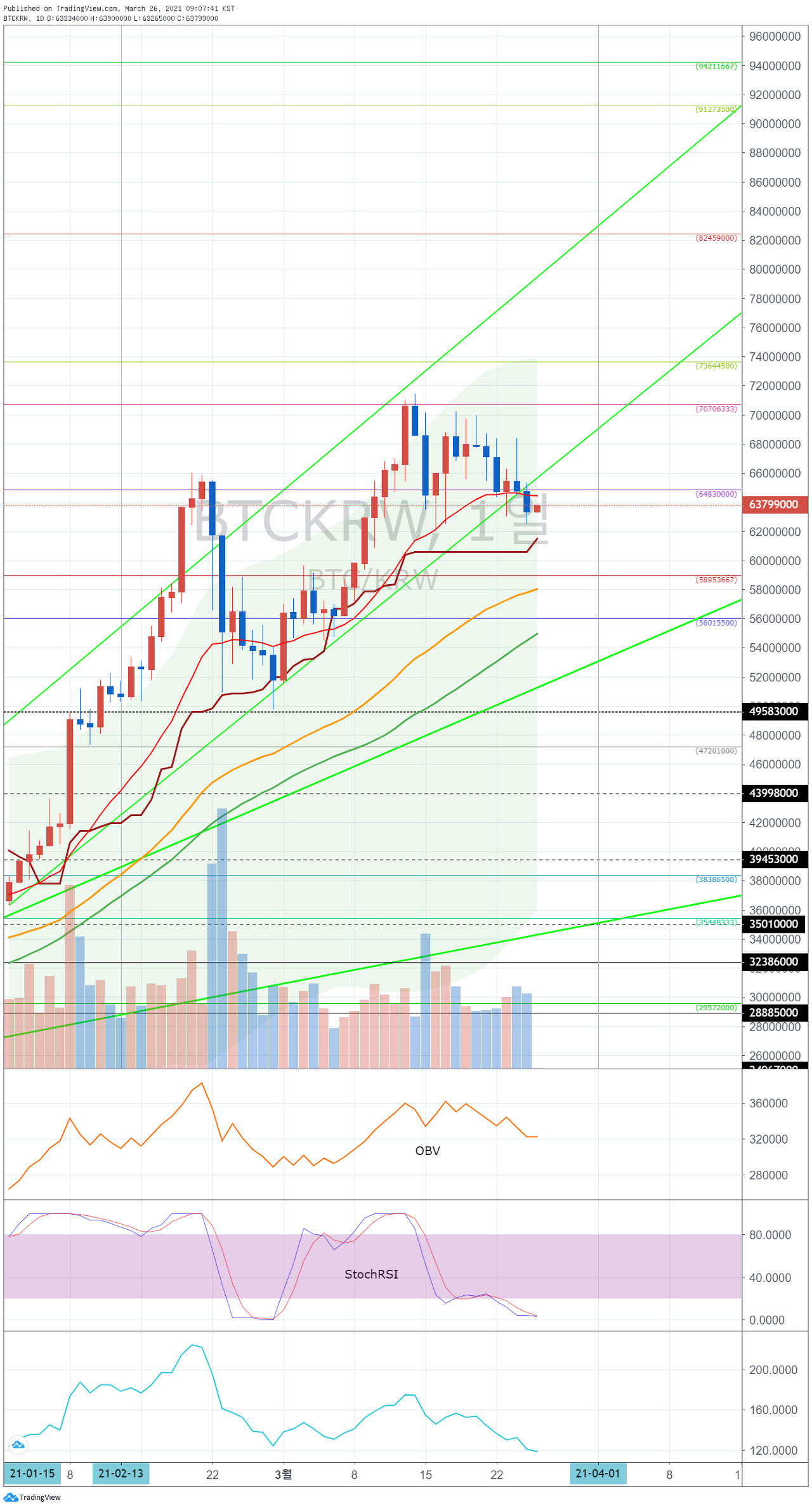 하락한다면, 61712000 -64837000 구간에서 지지를 받는지 지켜봐야 합니다.