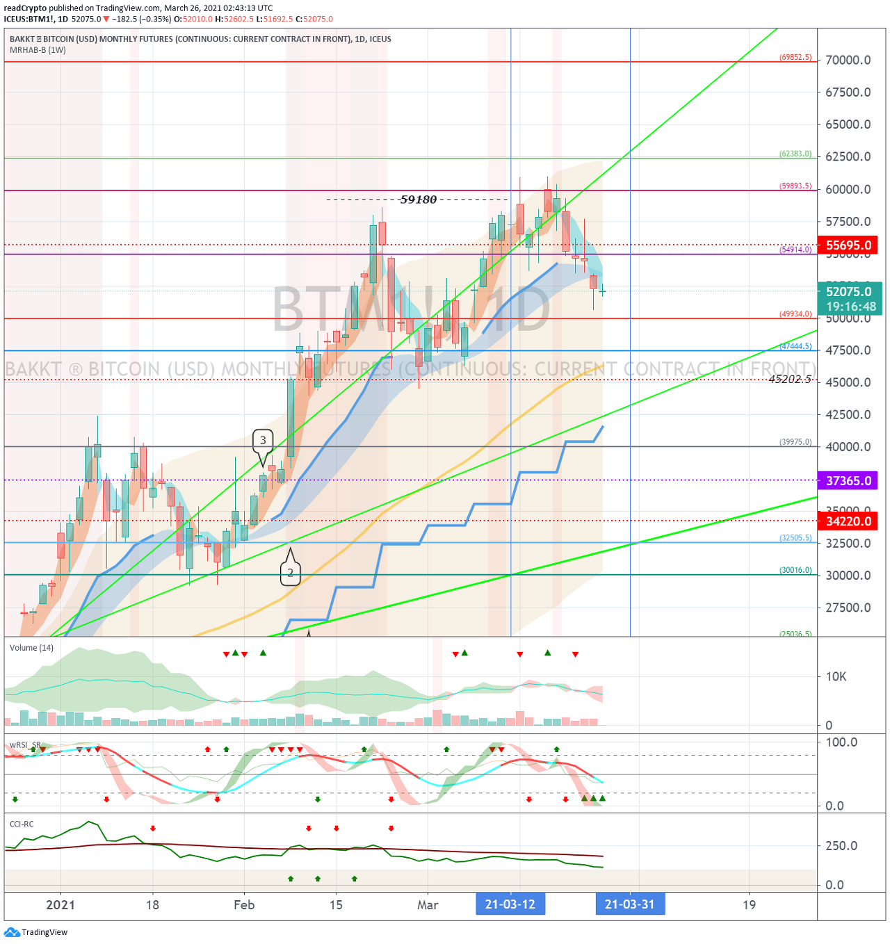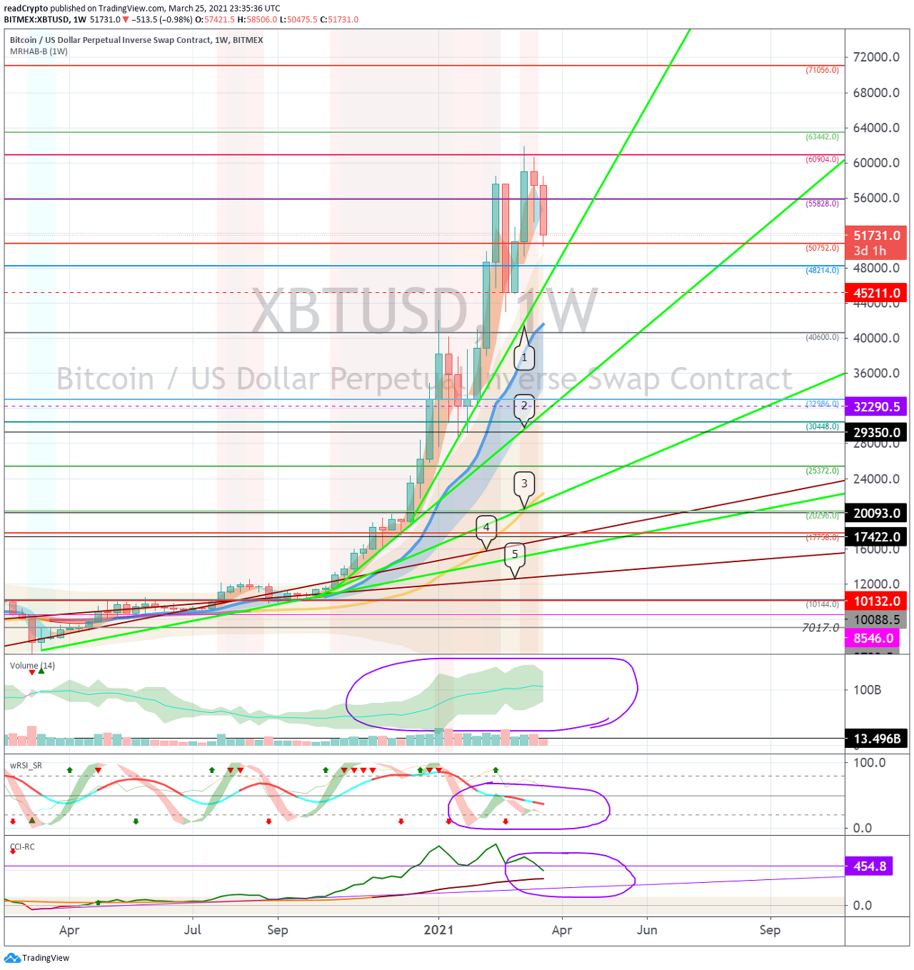 이번 변동성 기간은 BTCUSDT 차트 (48199.13-50736.52 구간과 60886.07-63423.46 구간)과 XBTUSD 차트 (48214.0-50752.0 구간과 60904.0-63442.0 구간) 에서 벗어나면서 종료될 것으로 예상됩니다.