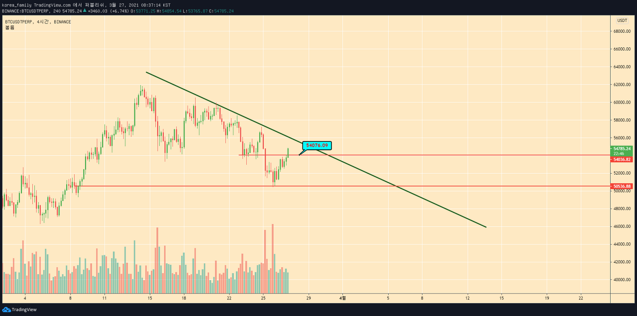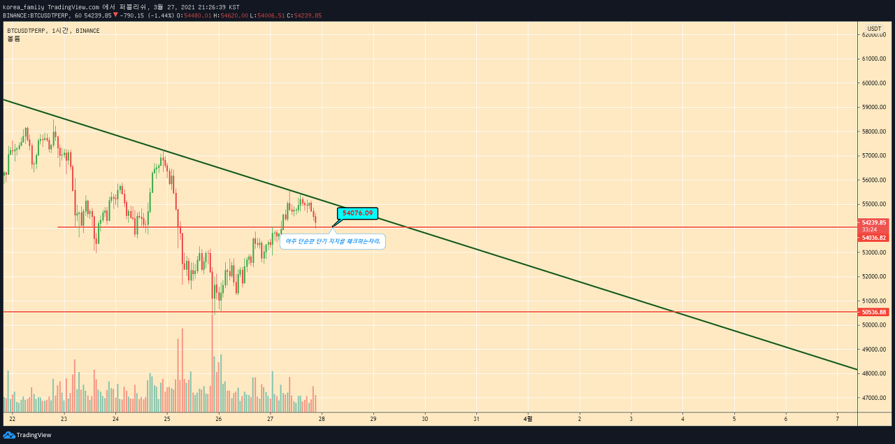 하지만 단기적으로 54000을 유지한다면 숏을 고집하기보단