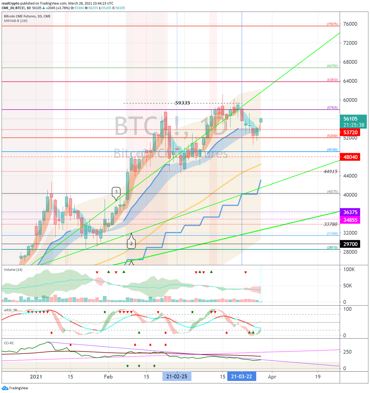 코멘트: (CME 비트코인 (BTC1!) 1D 차트)