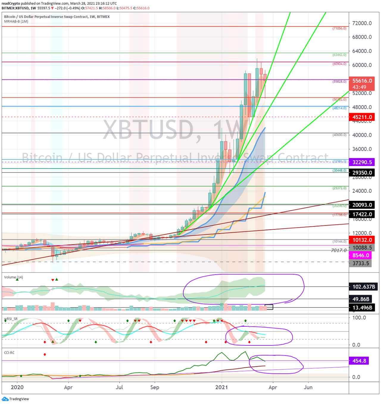 이번 변동성 기간은 BTCUSDT 차트 (48199.13-50736.52 구간과 60886.07-63423.46 구간)과 XBTUSD 차트 (48214.0-50752.0 구간과 60904.0-63442.0 구간) 에서 벗어나면서 종료될 것으로 예상됩니다.