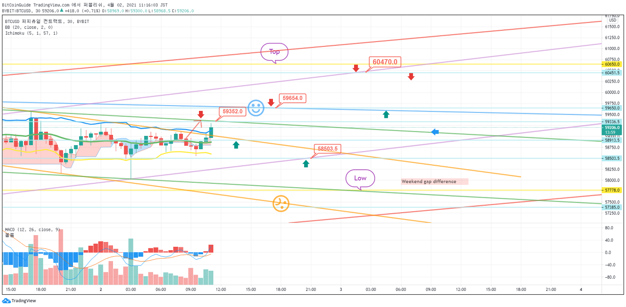 4월 2일 비트코인 bybit 차트분석입니다. by BitCoinGuide on TradingView.com