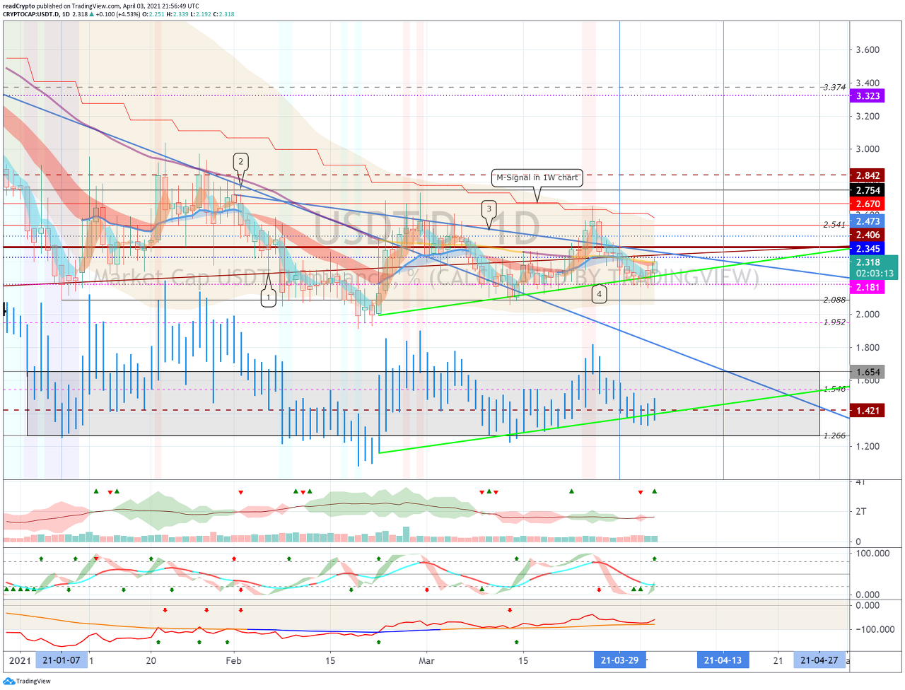 차트에 있는 갭 구간을 제거하고 본다면, USDT 도미넌스는 중요한 구간인 1.266-1.654 구간에 위치해 있다는 것을 알 수 있습니다.