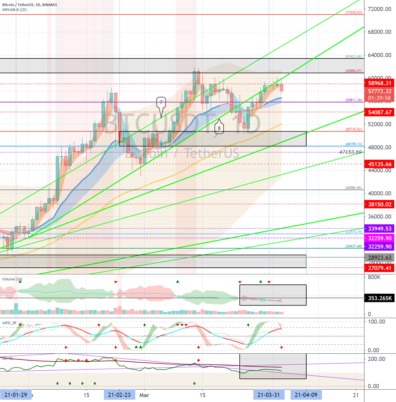 이번 변동성 기간은 BTCUSDT 차트 (48199.13-50736.52 구간과 60886.07-63423.46 구간)과 XBTUSD 차트 (48214.0-50752.0 구간과 60904.0-63442.0 구간) 에서 벗어나면서 종료될 것으로 예상됩니다.