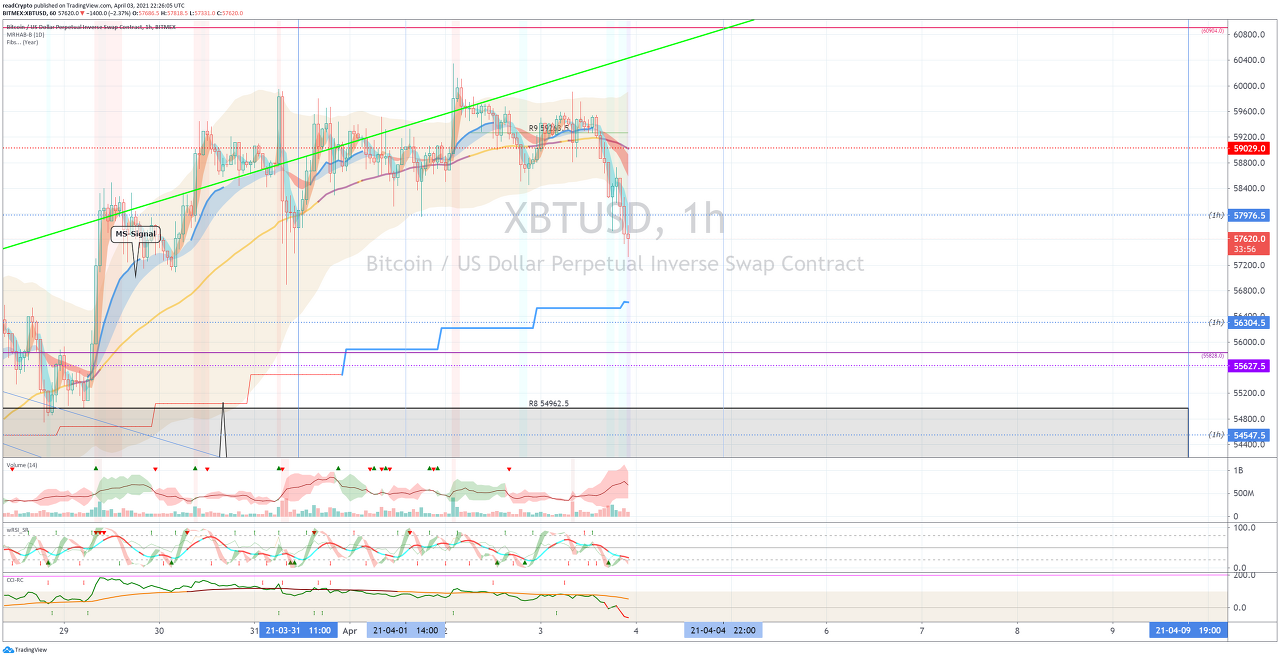 4월 6일경의 변동성으로 56.78-59.55 구간에서 벗어나는 움직임이 나오는지 지켜봐야 합니다.