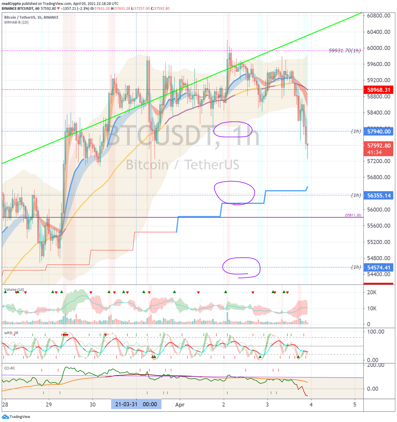 알트코인들의 가격이 반응을 보일 것으로 예상되는 지점은 57940.0 56355.14, 54574.41 지점 입니다.