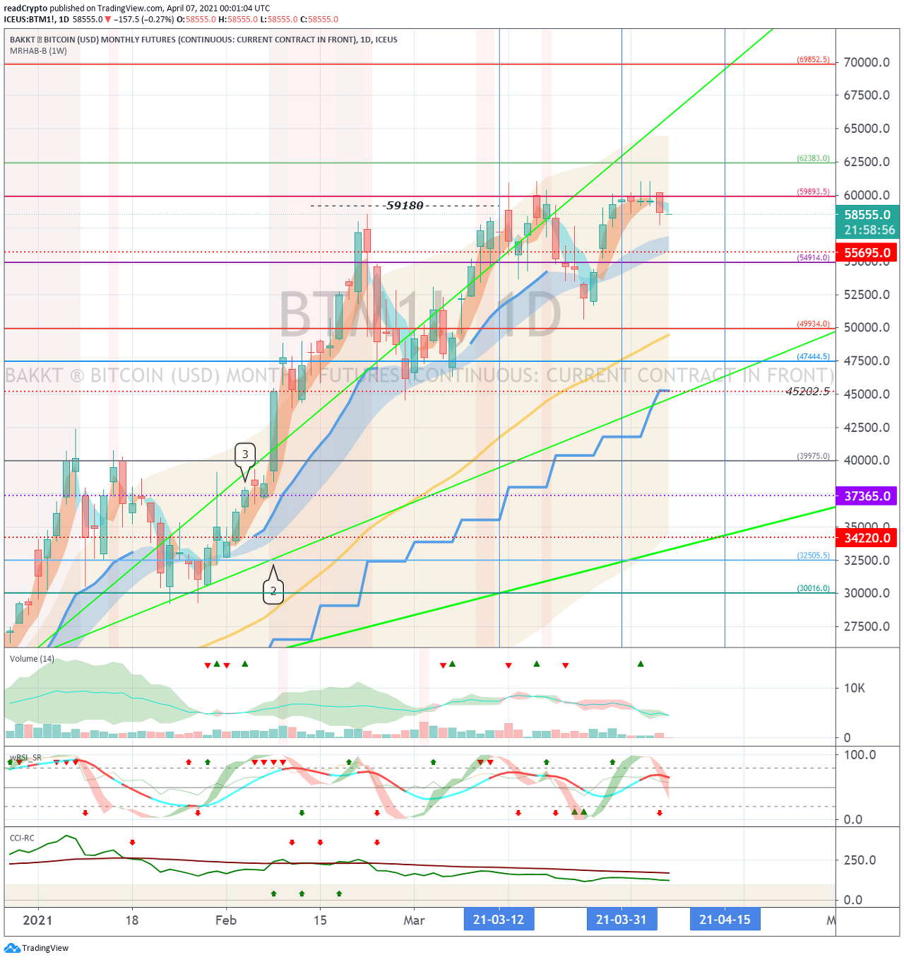 이번 변동성 기간은 BTCUSDT 차트 (48199.13-50736.52 구간과 60886.07-63423.46 구간)과 XBTUSD 차트 (48214.0-50752.0 구간과 60904.0-63442.0 구간) 에서 벗어나면서 종료될 것으로 예상됩니다.