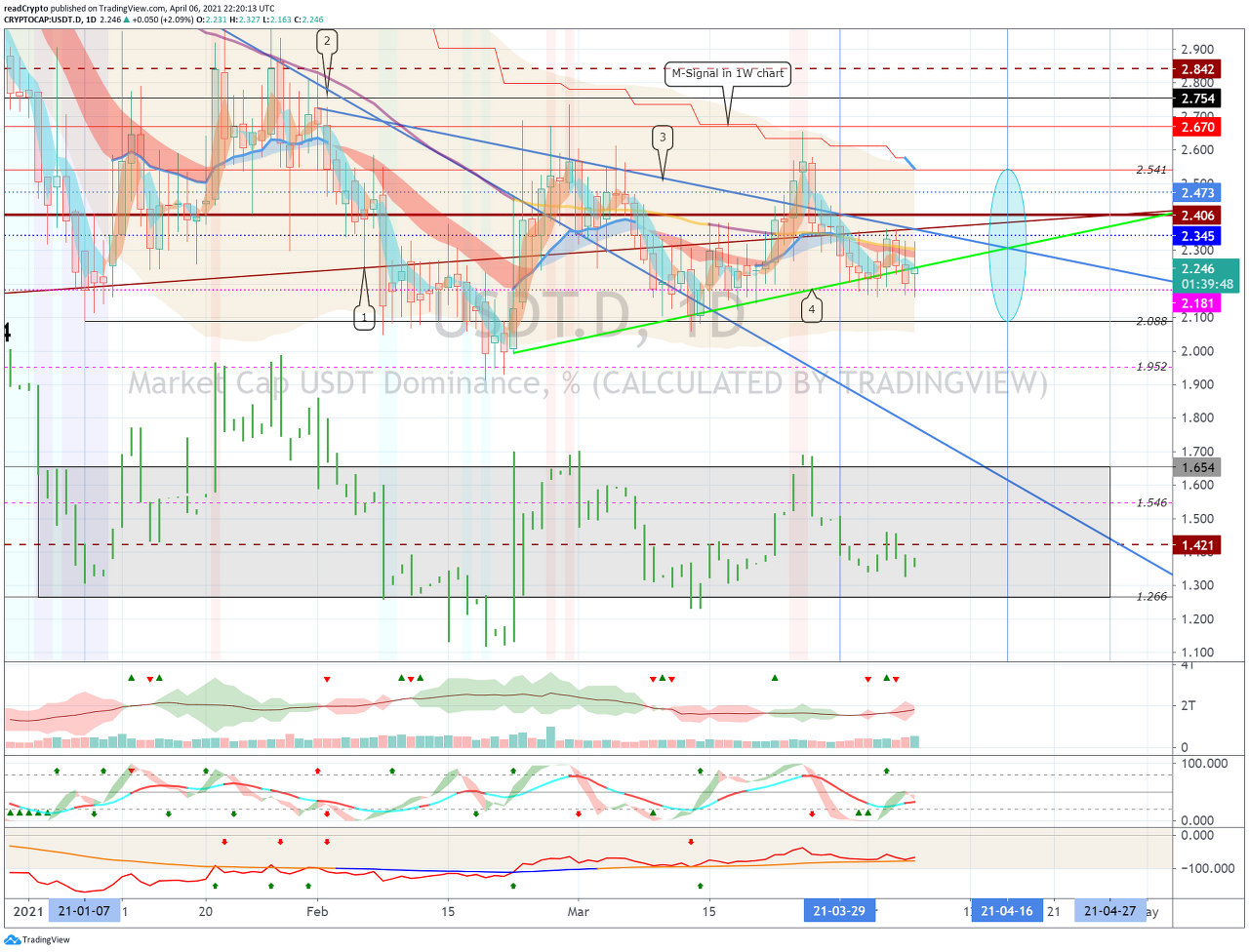 차트에 있는 갭 구간을 제거하고 본다면, USDT 도미넌스는 중요한 구간인 1.266-1.654 구간에 위치해 있다는 것을 알 수 있습니다.