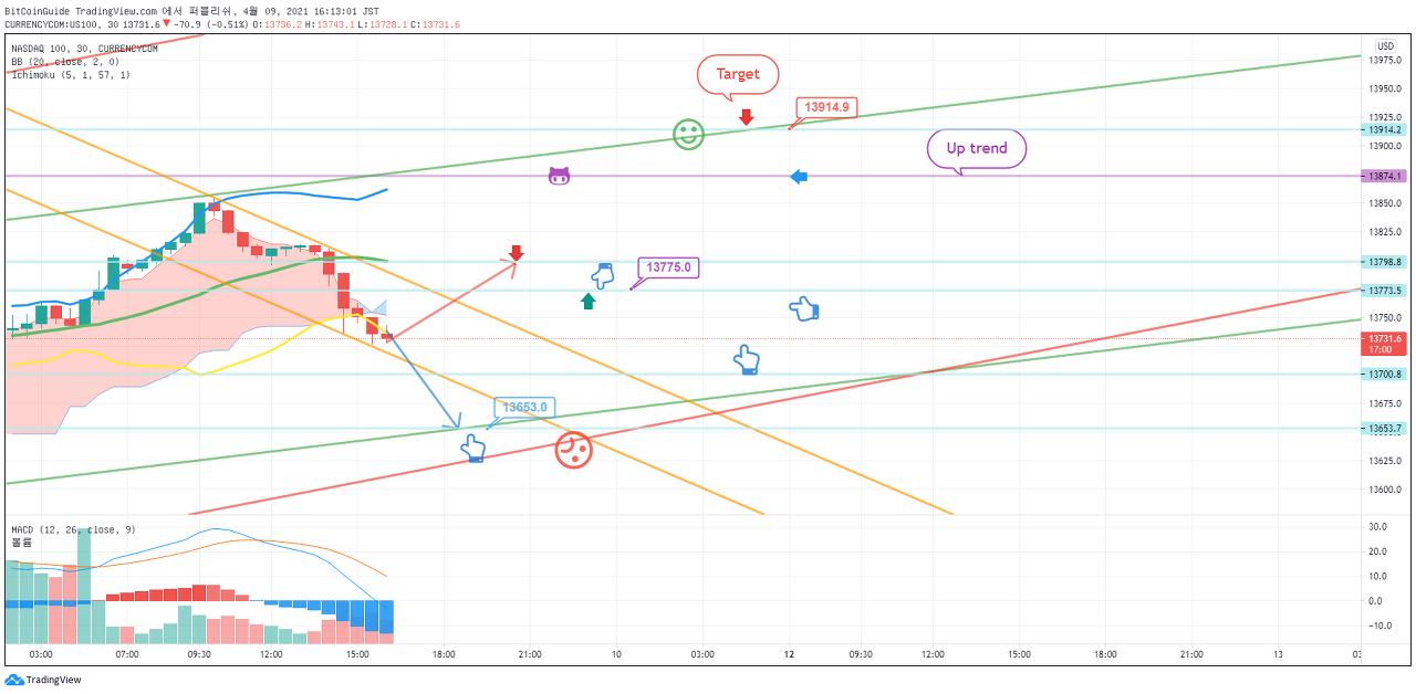 4월 9일 나스닥 US100 해외선물 차트분석입니다. by BitCoinGuide on TradingView.com