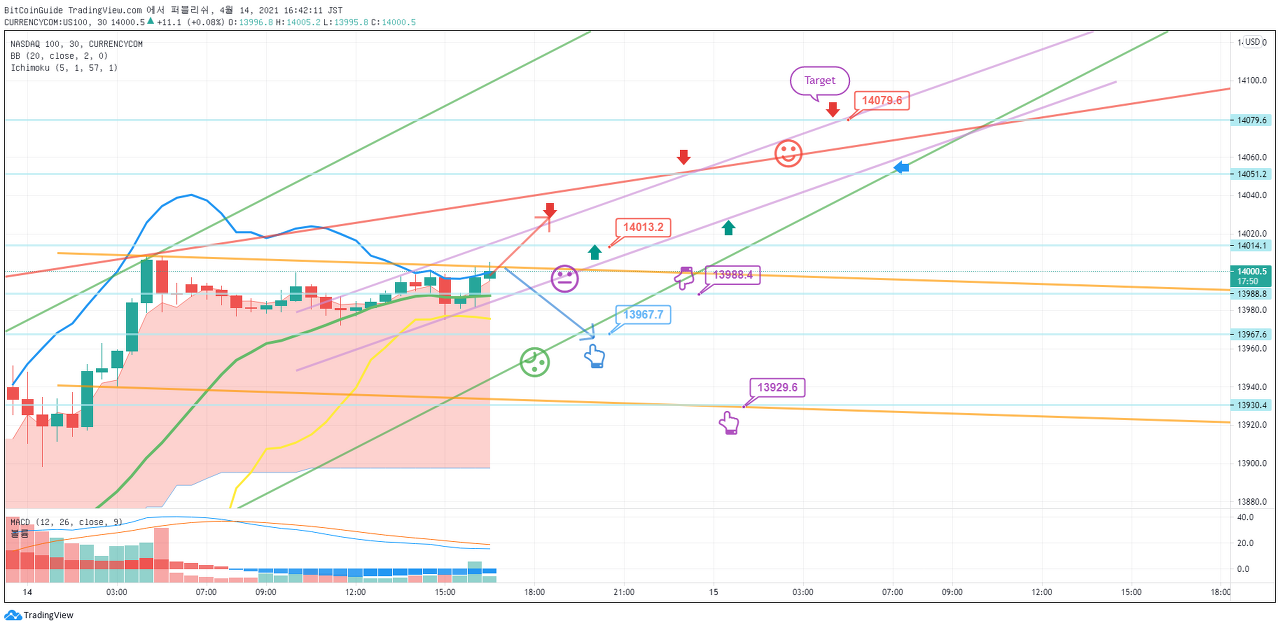 4월 14일 나스닥 US100 해외선물 차트분석입니다. by BitCoinGuide on TradingView.com