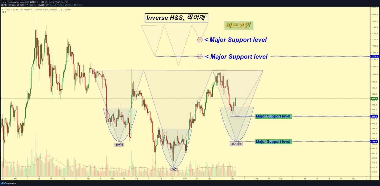 (4) HL지점인, 8600$를 지지기준점으로 잡고, 해당 지지레벨이 무너지지 않는다면, 저점을 지속 상승시키는 Dow-Theory의 상승파동에 대해서 고려하십시오