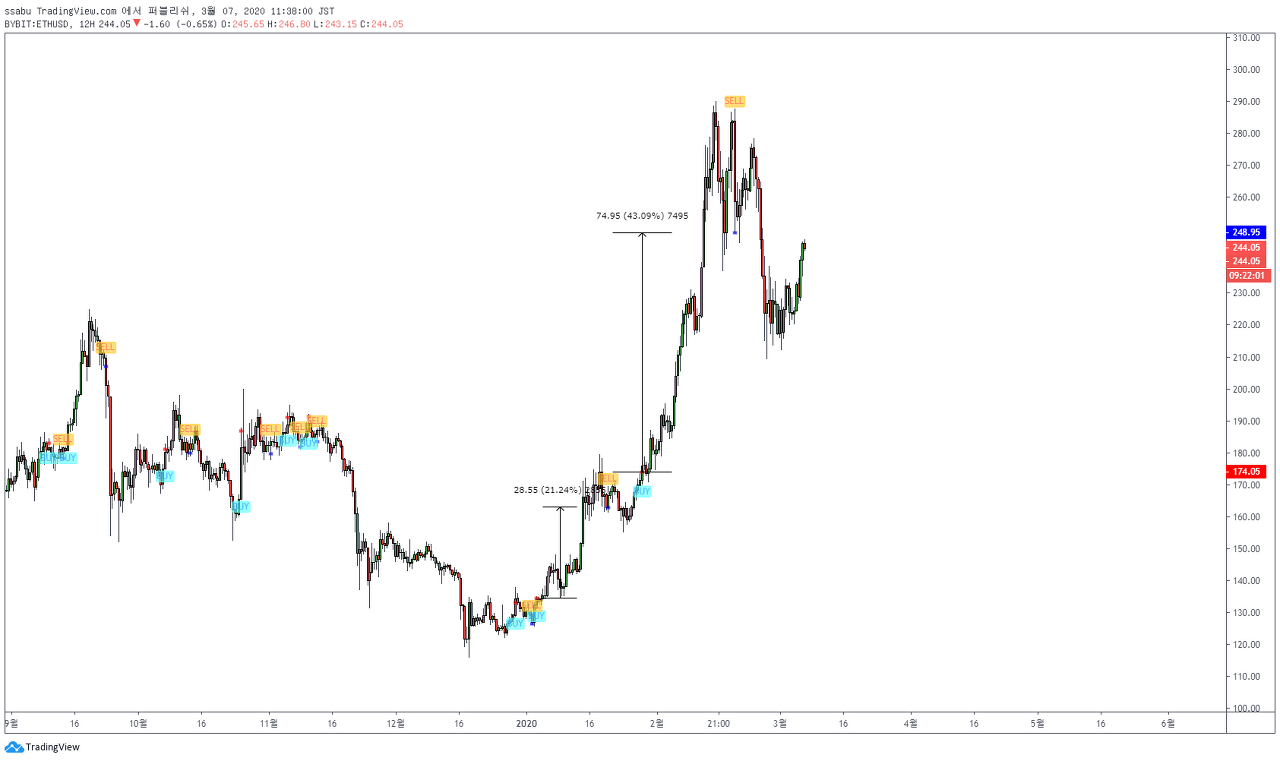 이번 추세장의 시작인 1월부터 지금까지의 모든 롱숏 시그널 중에 리플의 마지막 추세가 한 번 꺾이는 지점 빼고는 모두 수익 달성입니다.