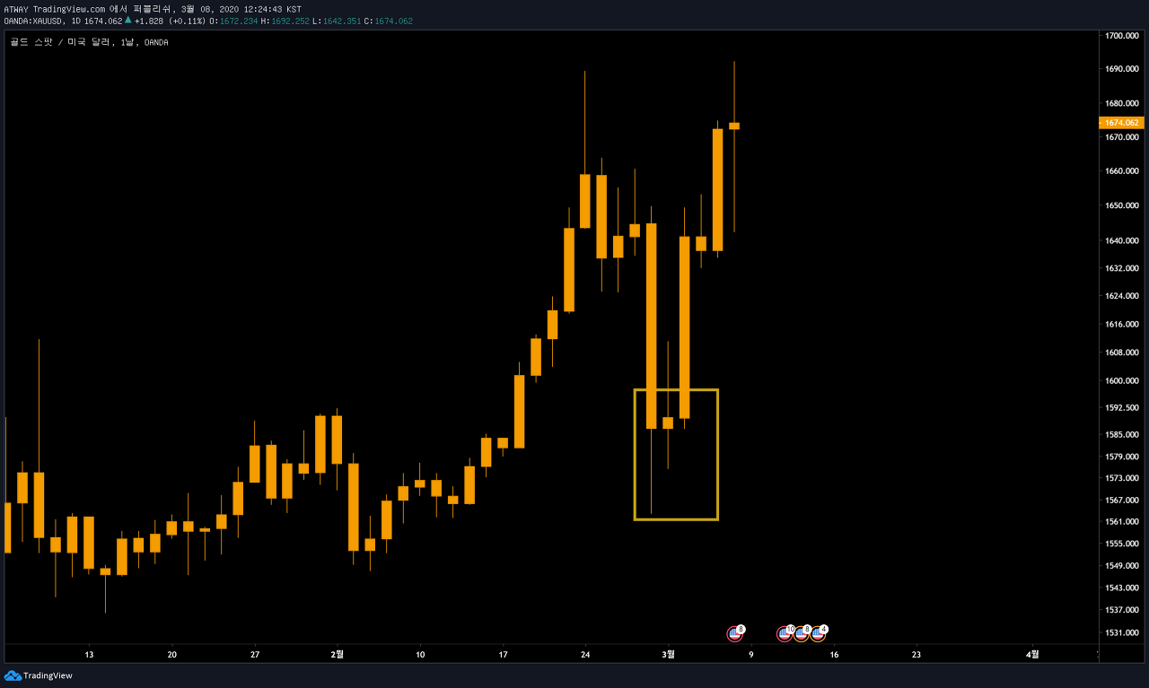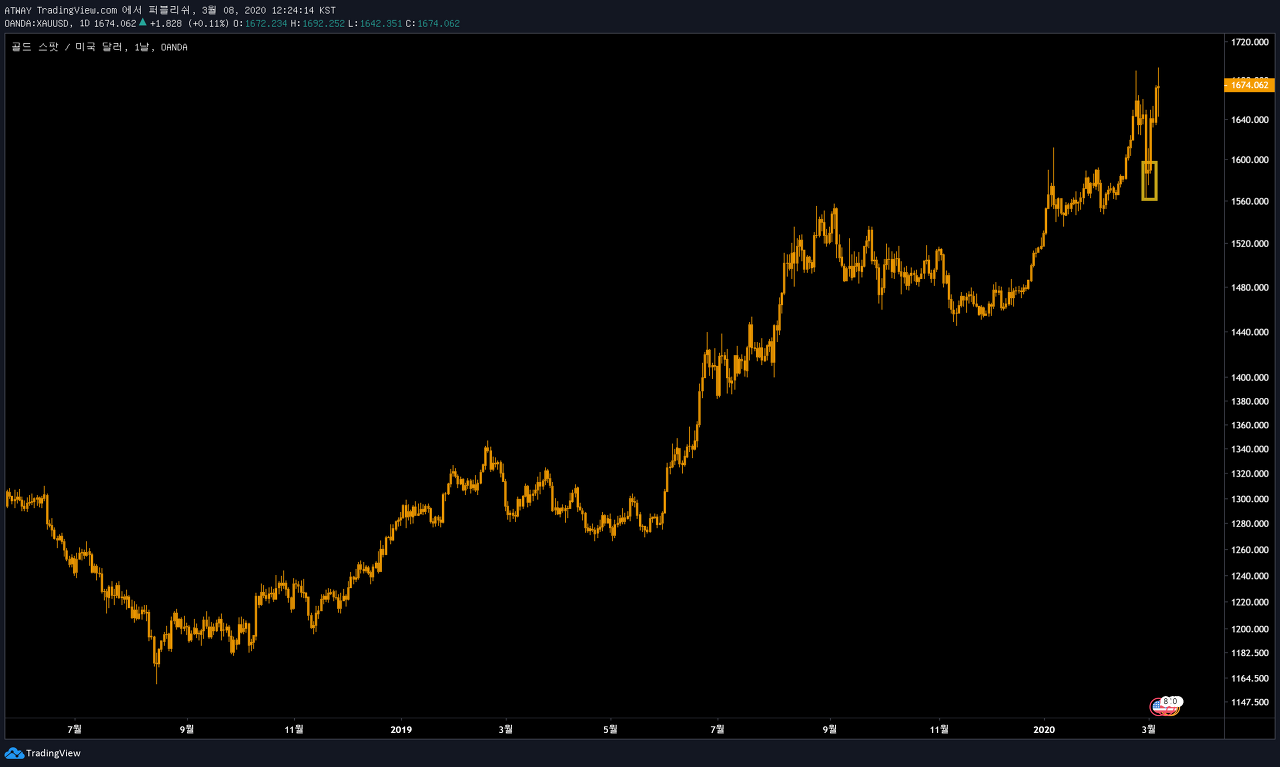 오히려 금은 상승트렌드를 지속하다 최근에 큰폭의 조정을 한차례 받았던 바가 있습니다. 코로나19와 안전자산 가격의 상관관계를 짜맞출 수는 있겠으나 설명이 되지 않는 부분들이 존재합니다.