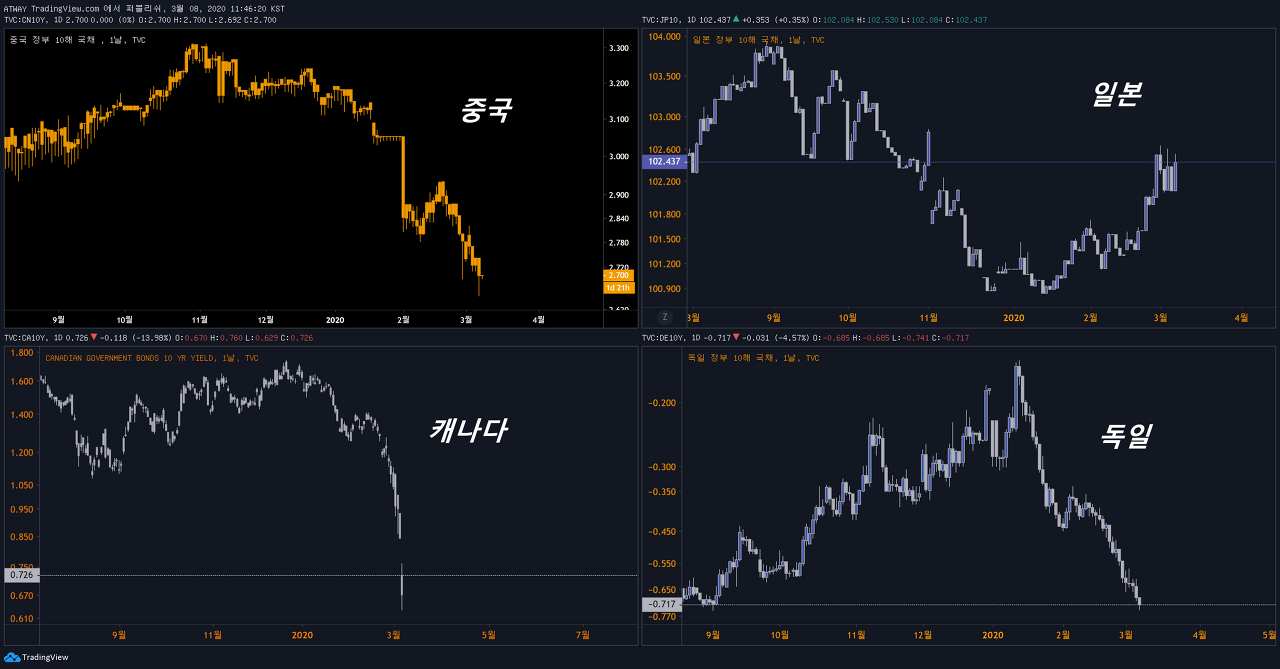 미국뿐만 아니라 주요국의 장기채 이자율 또한 폭락을 면치 못했음을 확인하실 수 있습니다.