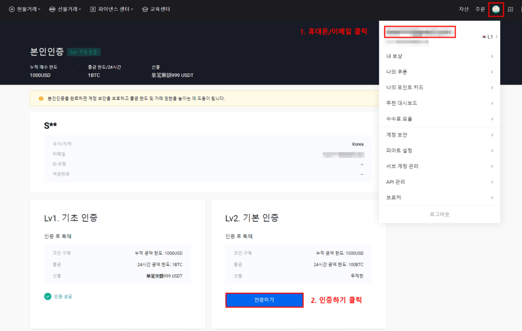 KYC 인증 방법 – PC 버전