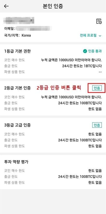 Lv.2 기본 인증 인증하기를 클릭 해줍니다.