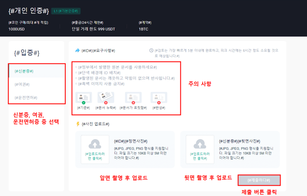 코인고수는 신분증으로 인증 방법을 선택 했습니다.