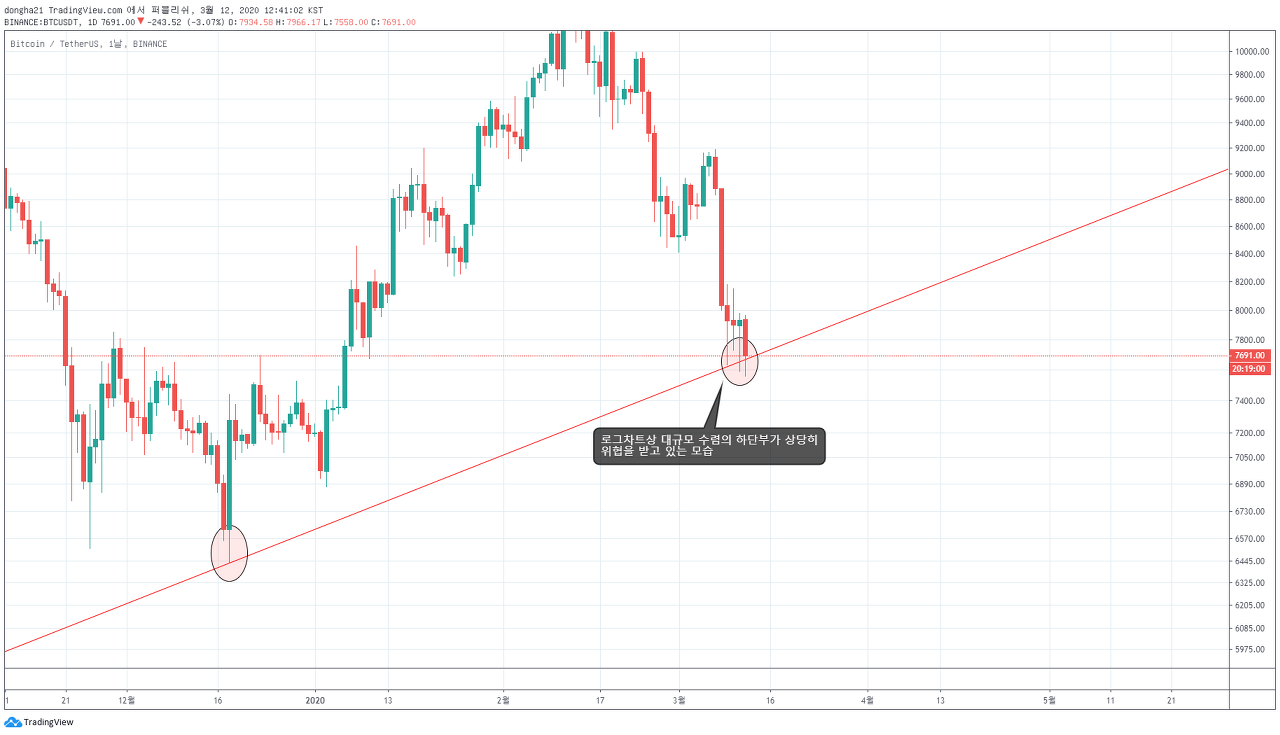 로그차트상 대규모 수렴의 하단부를 확인합니다