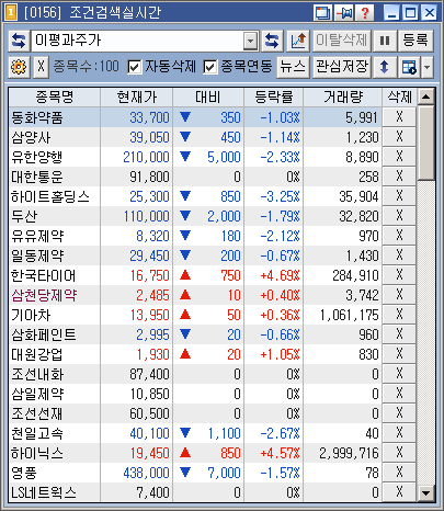 왼쪽상단에 주식 -> 종목검색 -> 조건검색을 클릭