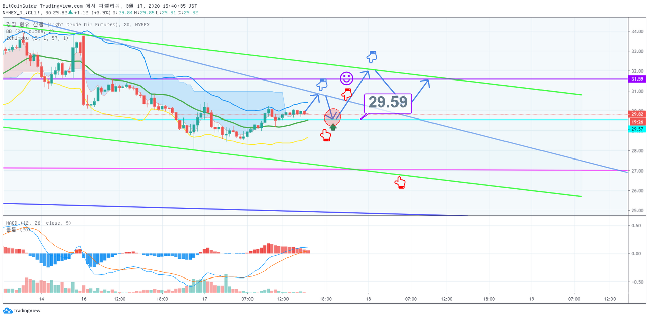 크루드오일 30분봉 차트입니다.