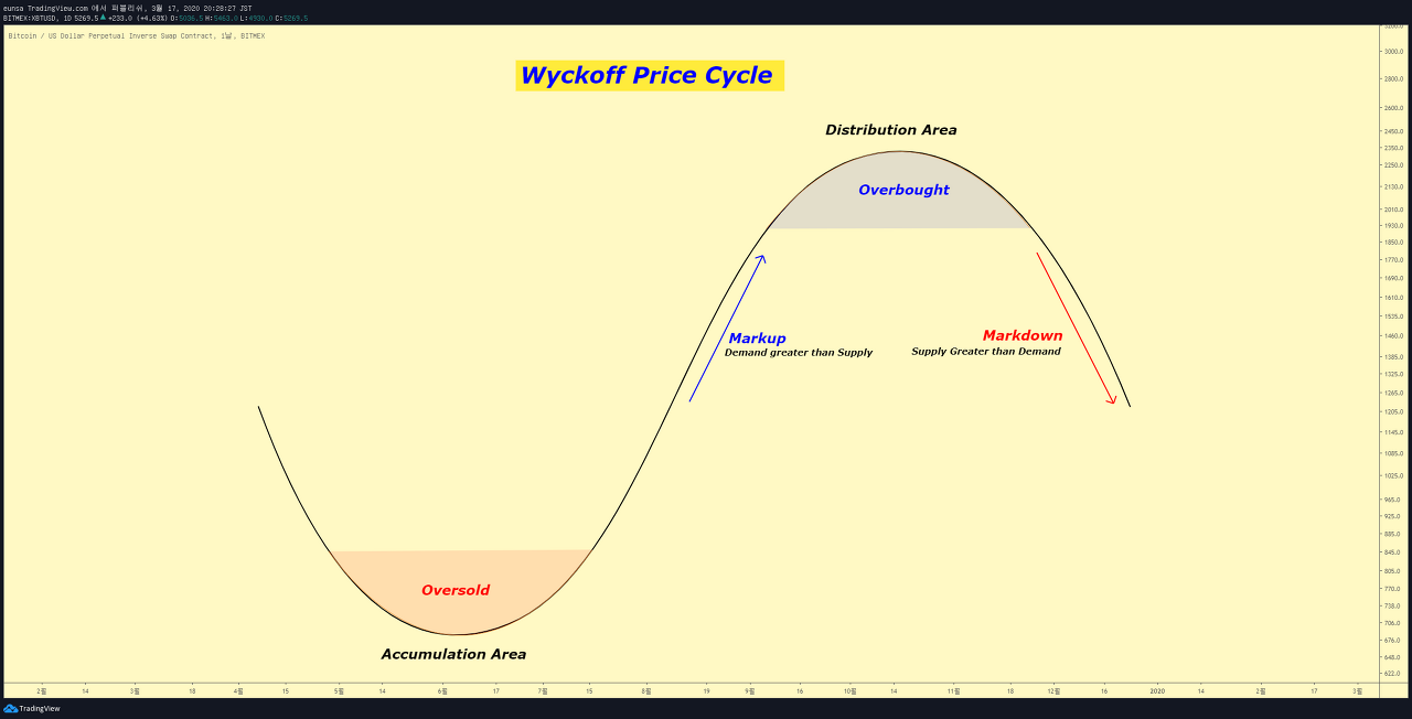 와이코프가 제시한 수요와 공급에 의한 주가 순환입니다